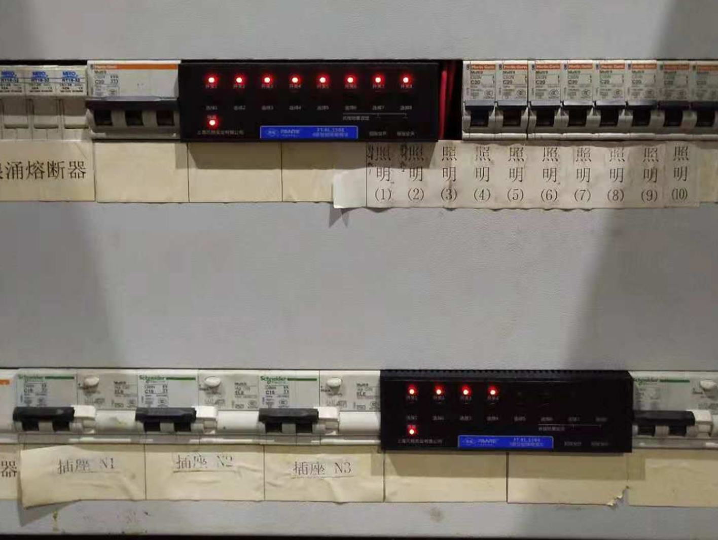 該項目采用的是經(jīng)濟型的照明控制模塊,如下圖,4回路的,8回路的都有。且由于經(jīng)濟型模塊不具備遠程控制功能,所以該項目則是每個電箱配了一個3.5寸觸摸屏。